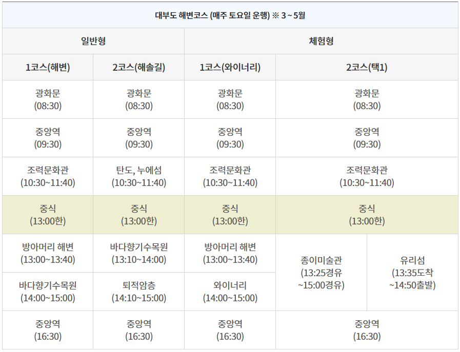 ㆍ 대부도 뱃길코스(일반, 체험형), 대부도 해변코스(일반, 체험형), 시내권