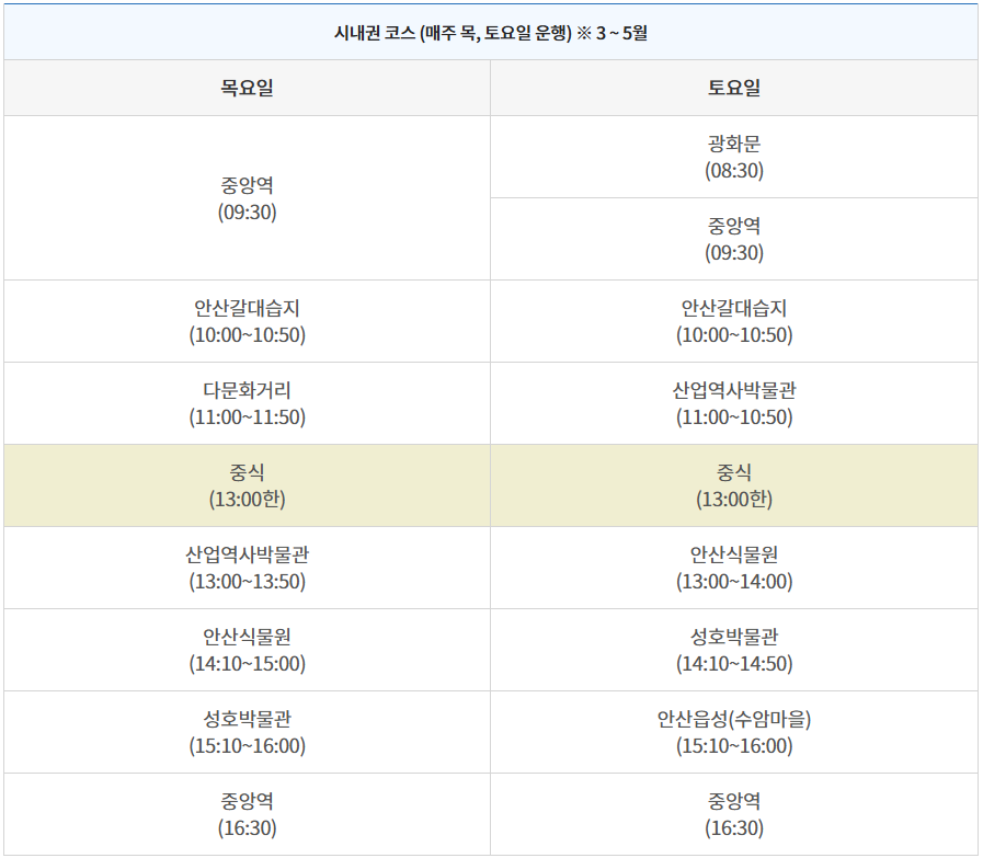 더 많은 정보를 원하시면 안산시티투어 홈페이지 참고 바랍니다.