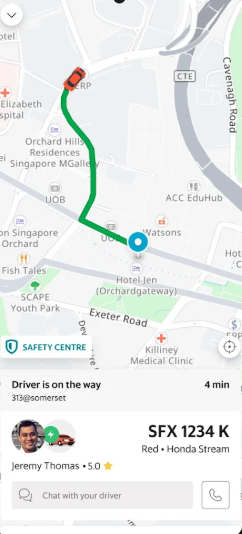 배정된 차량이 어디에서 오고 있는지도 지도에서 알 수 있습니다. 우리나라 카카오 택시와 시스템이 거의 동일해요