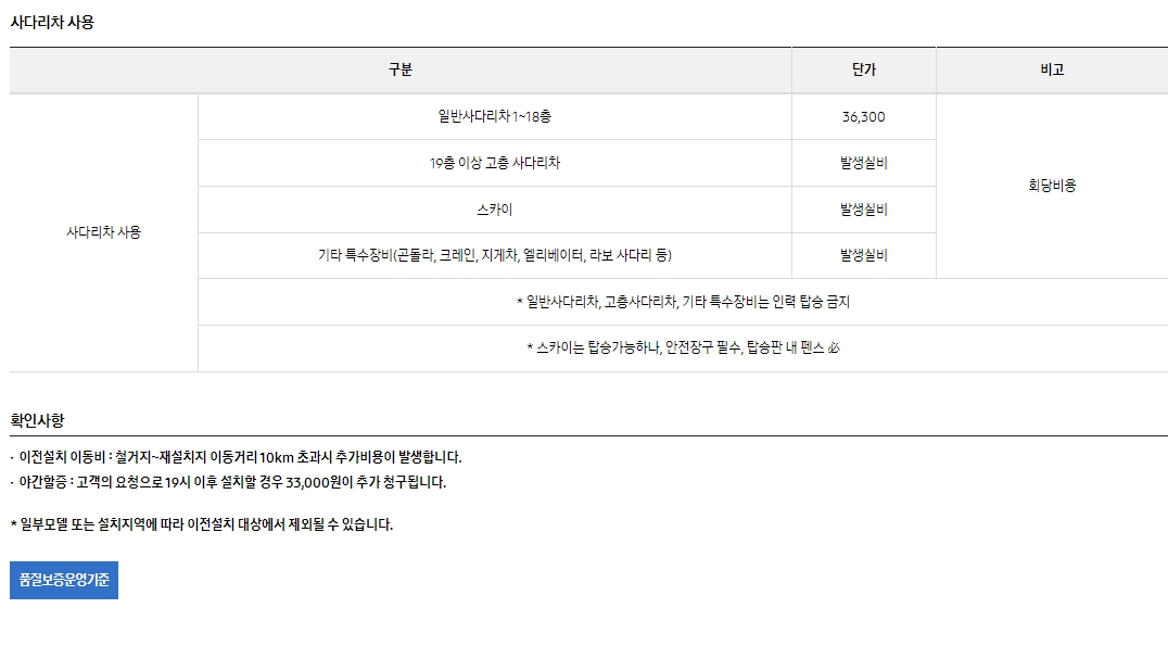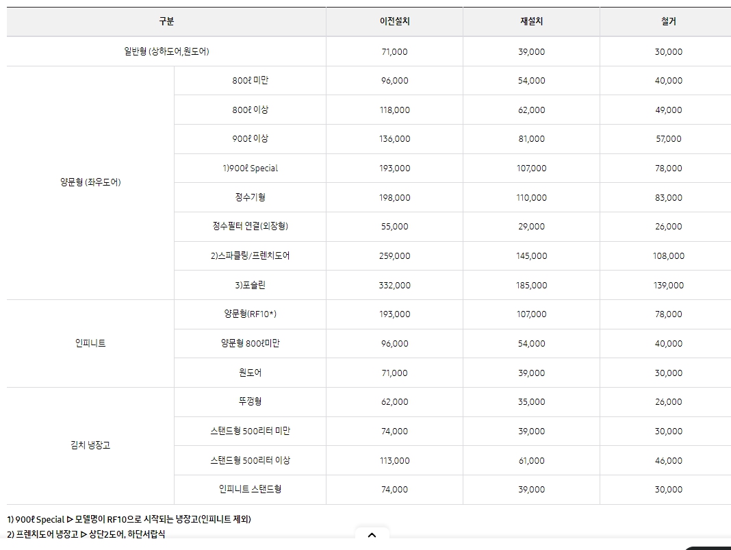 위에는 냉장고 단가 비용을 알아봤어요 각 카테고리별로 이용별 단가표가 나와있습니다.