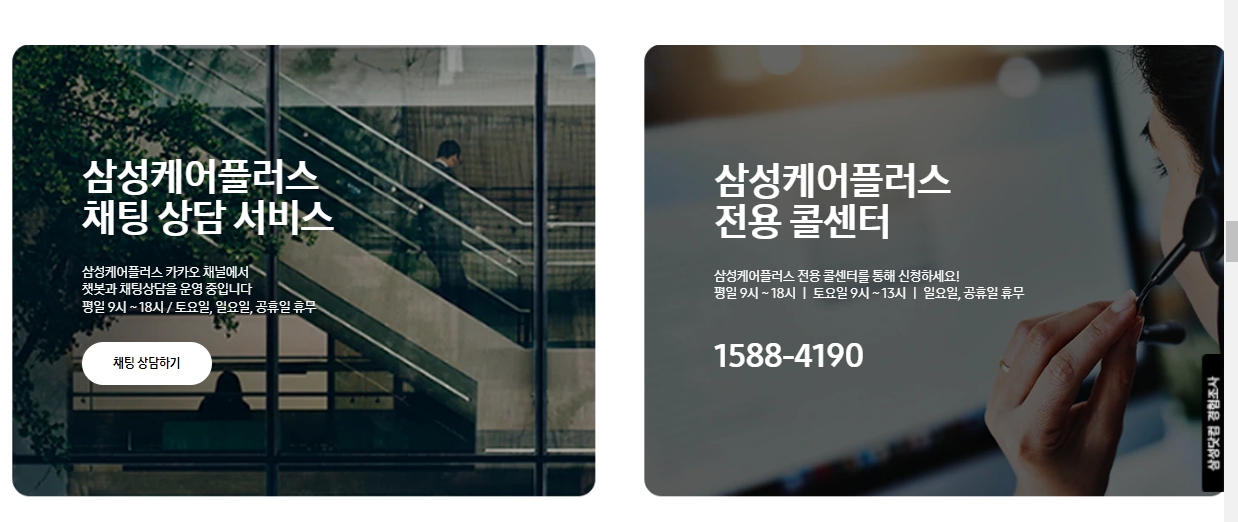 삼성케어플러슨 전용 콜센터 전화번호는 1588-4190입니다.