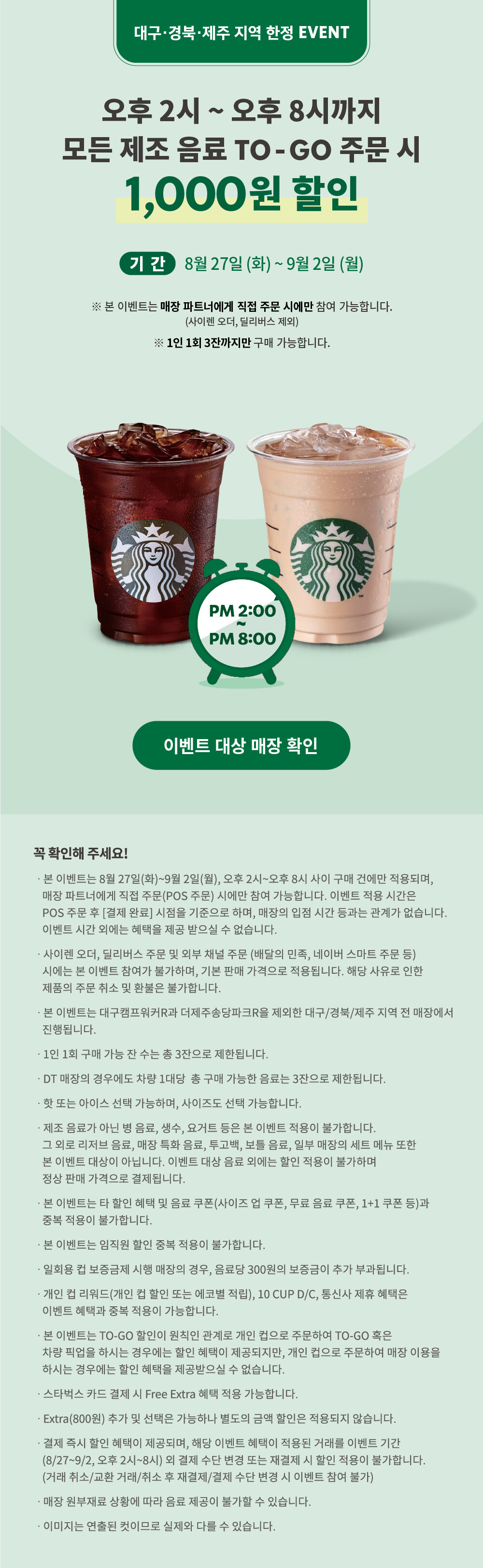 스타벅스 대구 경북 제주 지역한정 이벤트