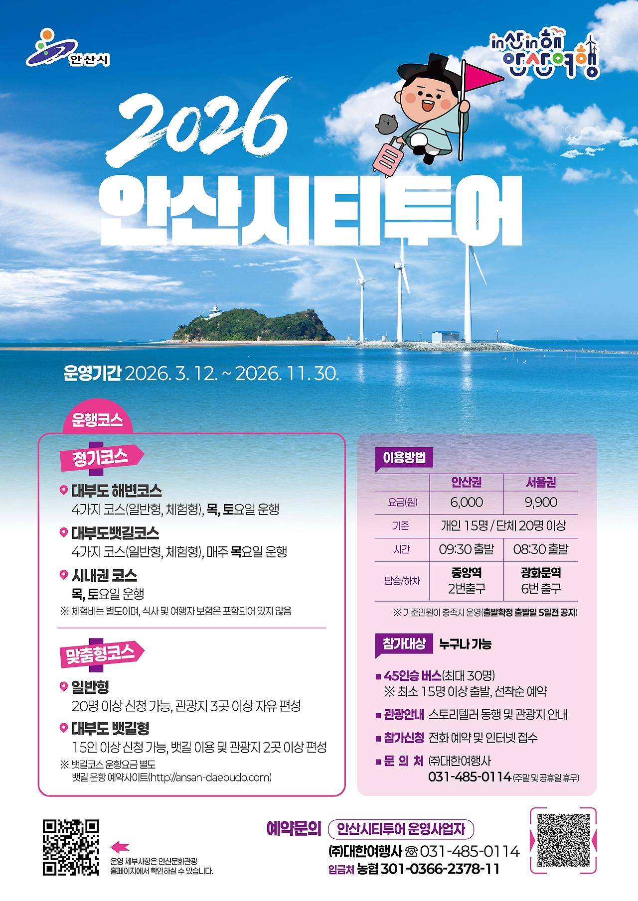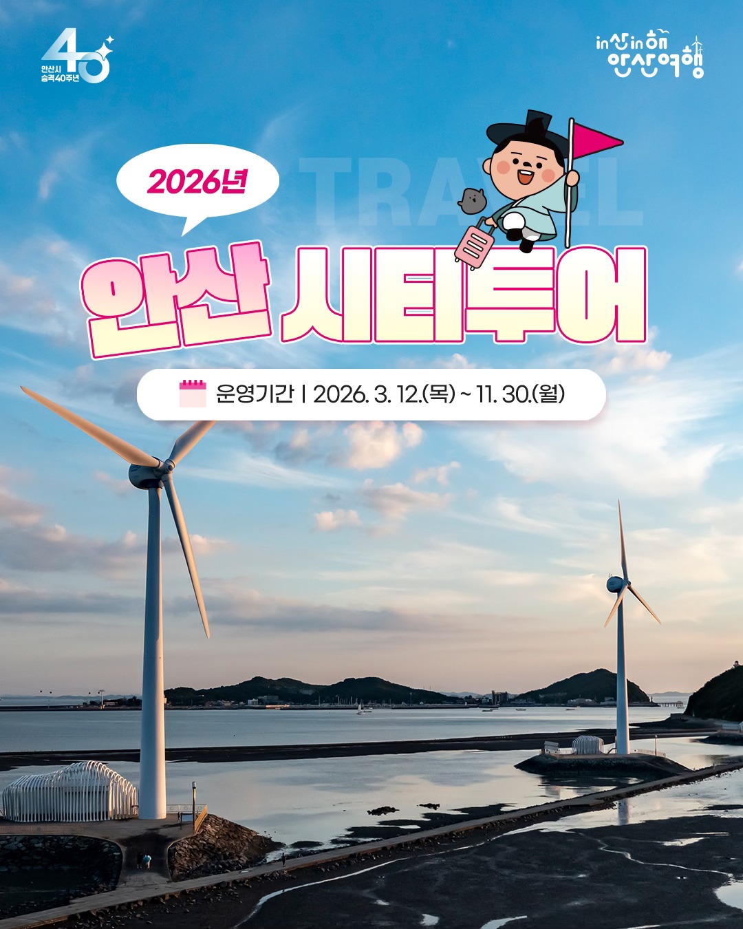 새로운 관광 코스로 경기도 안산시는 2026년 3월 12일부터 11월 30일까지 2026 안산시티투어를 운영합니다.