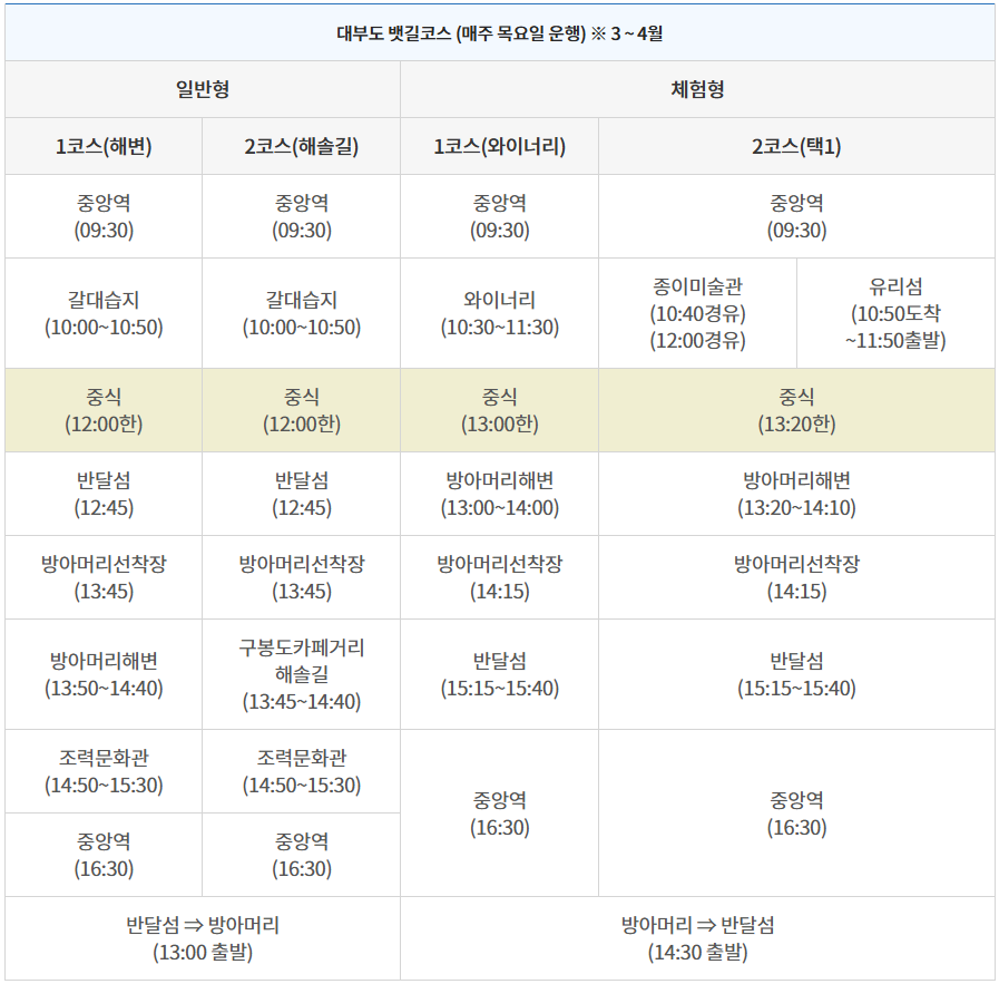 ㆍ 대부도 뱃길코스(일반, 체험형), 대부도 해변코스(일반, 체험형), 시내권
