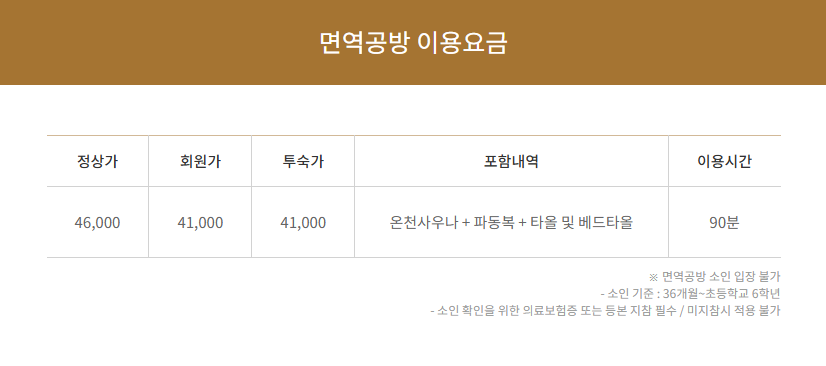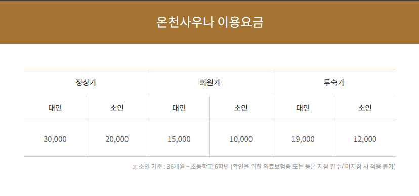 - 온천사우나 요금
