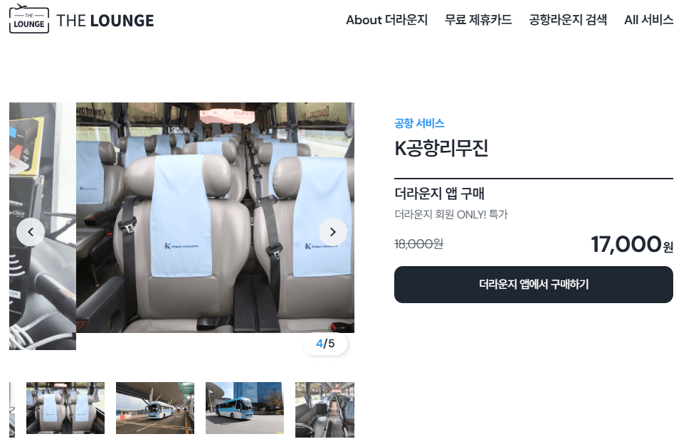더라운지와 K공항리무진은 제휴를 맺고 있습니다. 더라운지 앱을 통해 예매 시 1천원 즉시 할인 됩니다.