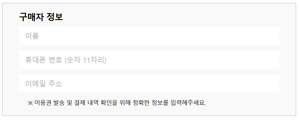 3. 구매수량, 구매자 정보 입력 및 결제 방법 선택 후 결제