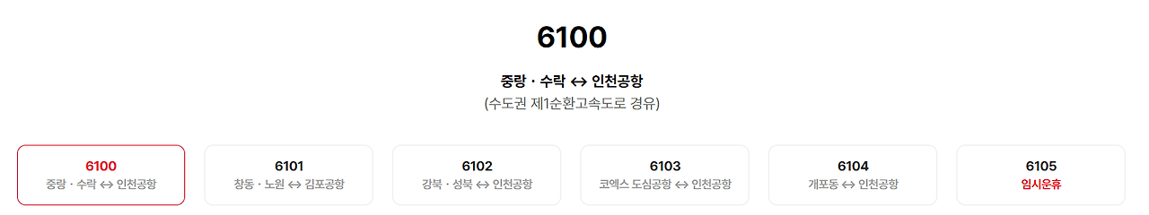 한국도심공항에서는 6100번, 6101번, 6102번, 6103번, 6104번을 예매할 수 있습니다.