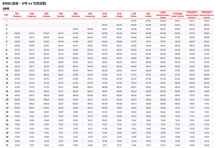 아래 표를 통해 공항 리무진 버스의 시간표와 노선 확인 방법을 상세히 안내드립니다.