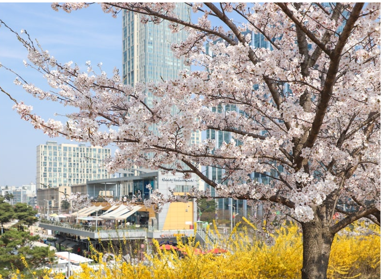 송도 센트럴파크는 현대적인 도시 풍경과 자연이 조화롭게 어우러진 공원으로 봄이 되면 벚꽃이 만개하여 아름다운 도시 풍경을 연출합니다. 공원 내 수로를 따라 산책하거나 카약, 보트 등을 타며 여유로운 시간을 보낼 수 있고 주변에 다양한 맛집 등 편의시설이 마련되어 편리합니다.