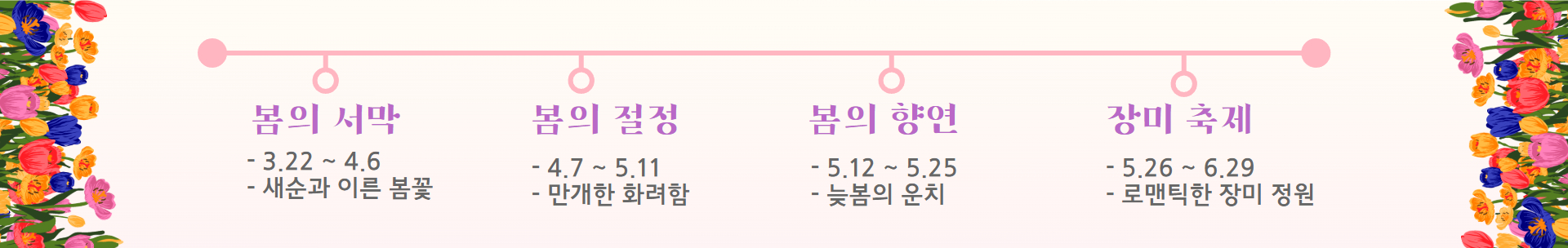 2025년 봄에는 3.2만 평의 대지에 펼쳐진 13개의 테마공간에서 다양한 봄꽃을 만나볼 수 있으며, 매주 토요일에는 불꽃놀이까지 진행되어 특별한 추억을 만들 수 있다.