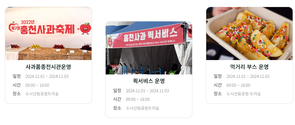 높은 당도와 아삭한 식감 그리고 새콤달콤한 맛의 조화가 일품인 홍천사과를 사과축제에서 만나보세요~!
