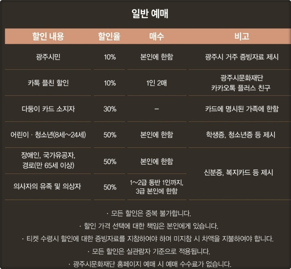 무료 주차: 공연 관람객은 행사 당일 4시간까지 무료로 주차할 수 있습니다.