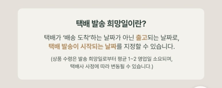 택배 발송 희망 일은 도착하는 날짜가 아닌 출고가 되는 날짜로