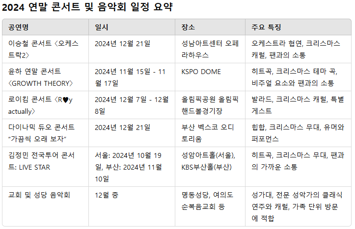2024년 연말 콘서트 및 음악회 일정 요약