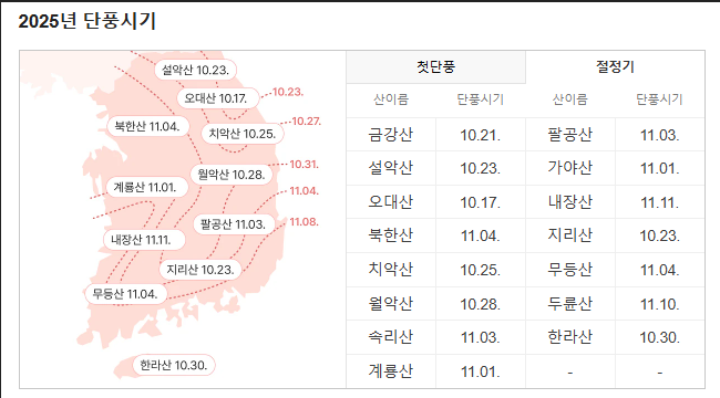 1. 2025년 전국 단풍 예상 시기 (첫 단풍 & 절정)