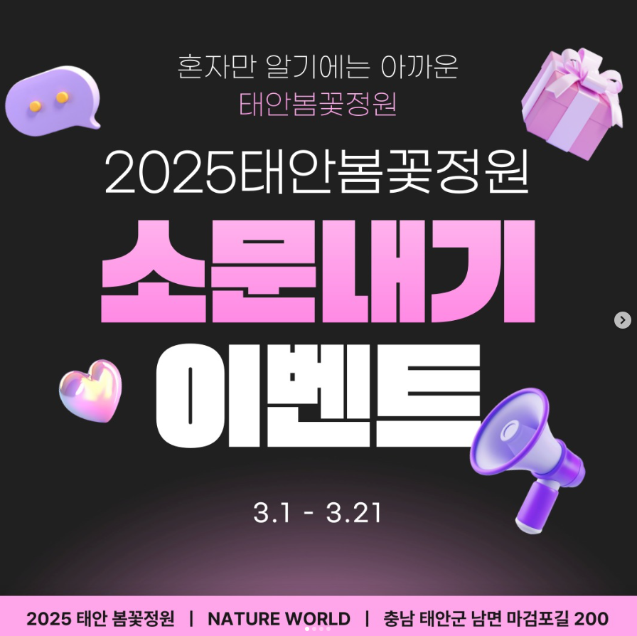태안 봄꽃정원의 아름다움을 더 많은 분들과 함께 나누기 위해 '소문내기 이벤트'를 진행합니다!