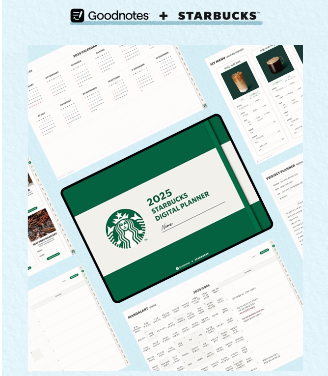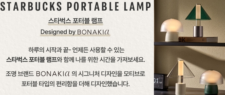 올해 증정품은 스타벅스 감성이 가득한 몰스킨 플래너, 세련된 포터블 램프, 실용적인 캘린더로 구성되었습니다.