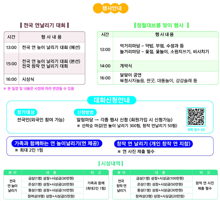 - 신청마감 : 선착순 마감(연 높이 날리기 300팀, 창작 연날리기 50팀)