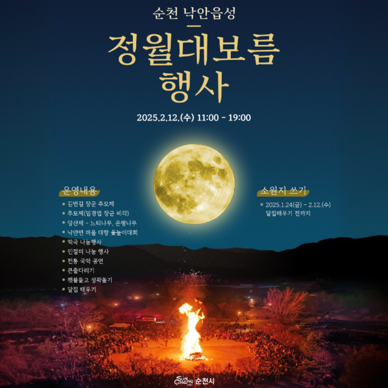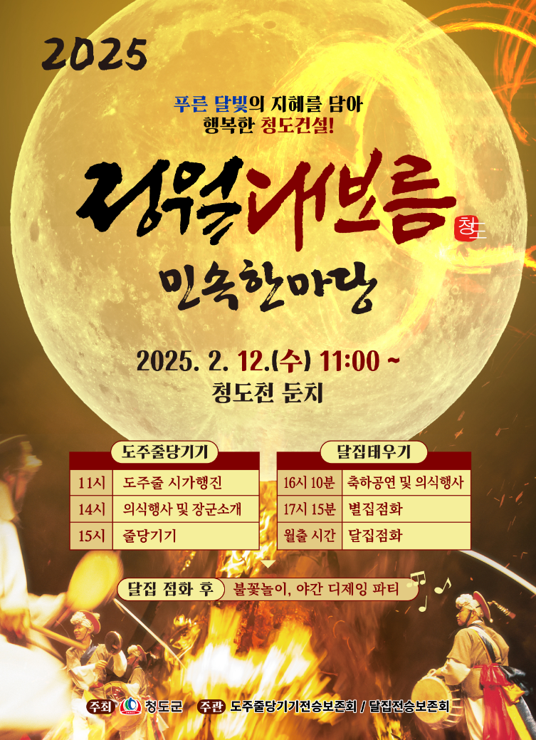 일 년 중 첫 보름달이 뜨는 정월대보름이 2월 12일로 다가오면서 액운을 쫓고 올 한 해 복을 기원하는 정월대행사를 소개합니다. 전국에서 개최되는 정월대보름 행사 확인하시고 묵은 액운 훌훌 털어내고 달집태우기, 지신밟기 등 다양한 행사도 즐기며 행운 가득한 2025년 을사년을 시작해 보세요.