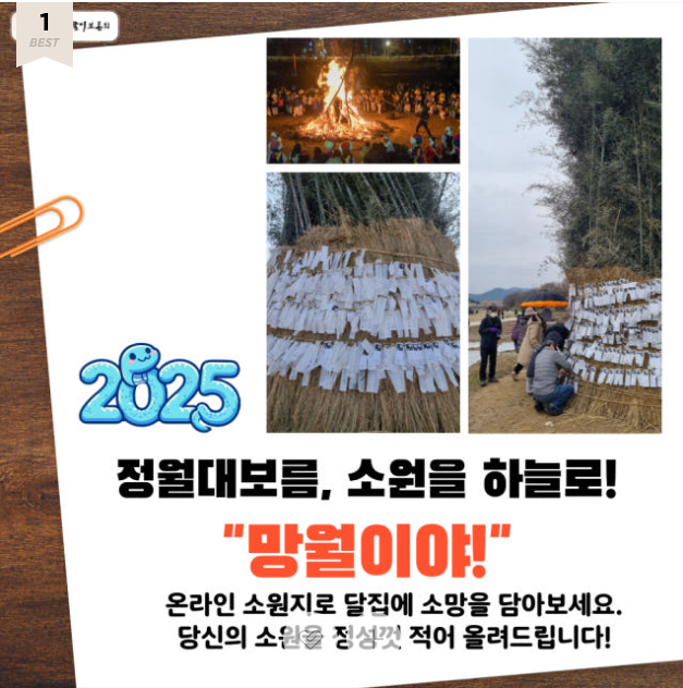 * 소원지쓰기 : 1. 24.(금) ~ 2. 12.(수) 달집태우기 전까지