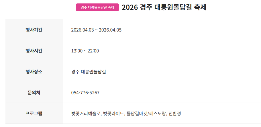 2. 경주 보문관광단지 대릉원돌담길 축제 04.03(금)~04.05(일)