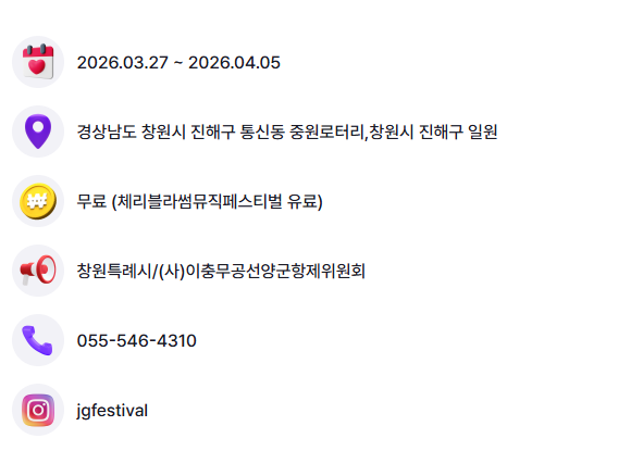 1.경남 진해 군항제 03.27(금)~04.05(일)