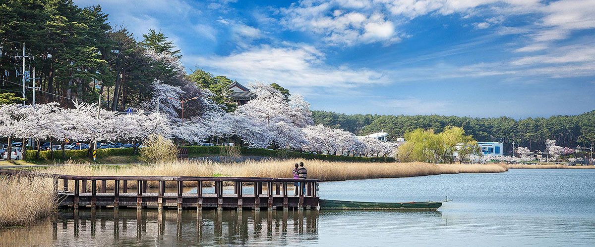 탁 트인 넓은 경포 호수를 산책하며 화려하고 아름다운 벚꽃에 휩싸여 하늘 위의 구름을 딛고 다니는듯한 황홀경에 빠지게 됩니다.